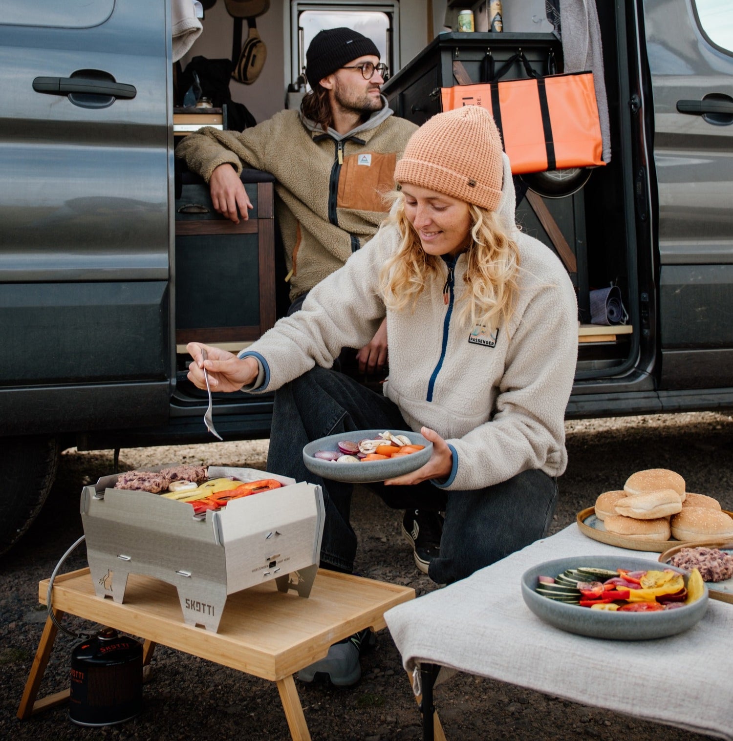 Use with gas, charcoal or wood - SKOTTI is the perfect grill for van-life, balcony, picnic or camping.